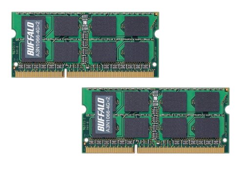 BUFFALO PC3-8500(DDR3-1066)対応 204Pin用 DDR3 SDRAM S.O.DIMM 2枚組 for Mac A3N1066-4GX2